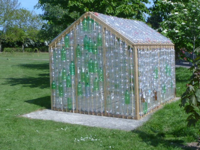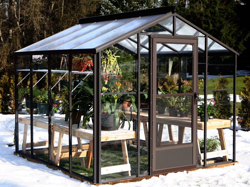 Is a greenhouse made mostly of glass. It stays warm inside even during winter season.